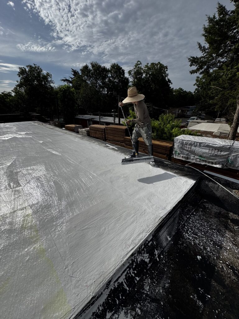 The FARR System by Western Colloid (Fluid-Applied Reinforced Roofing) is one of the most proven, sustainable roofing restoration systems available today. Designed for seamless waterproofing, this fluid-applied system builds a reinforced membrane directly over your existing roof—eliminating tear-offs, extending roof life, and delivering unmatched protection against the Texas elements.